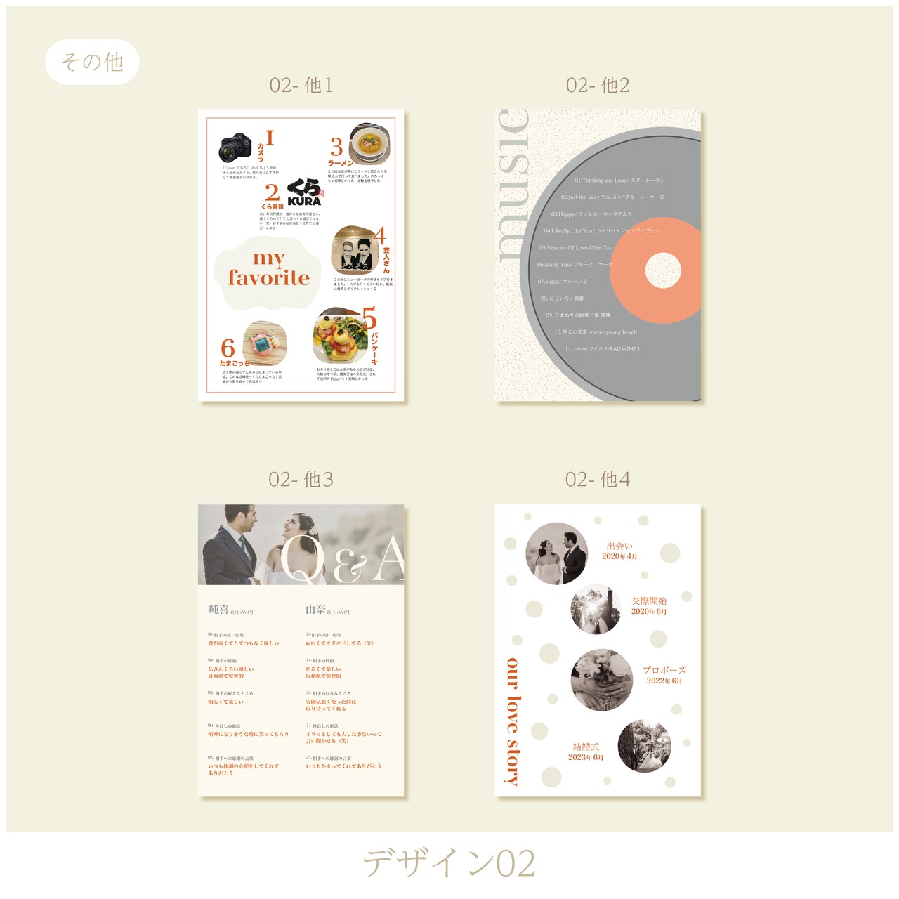 各ページデザインを自分でセレクトしてお好みのプロフィールブックを作れます◎
