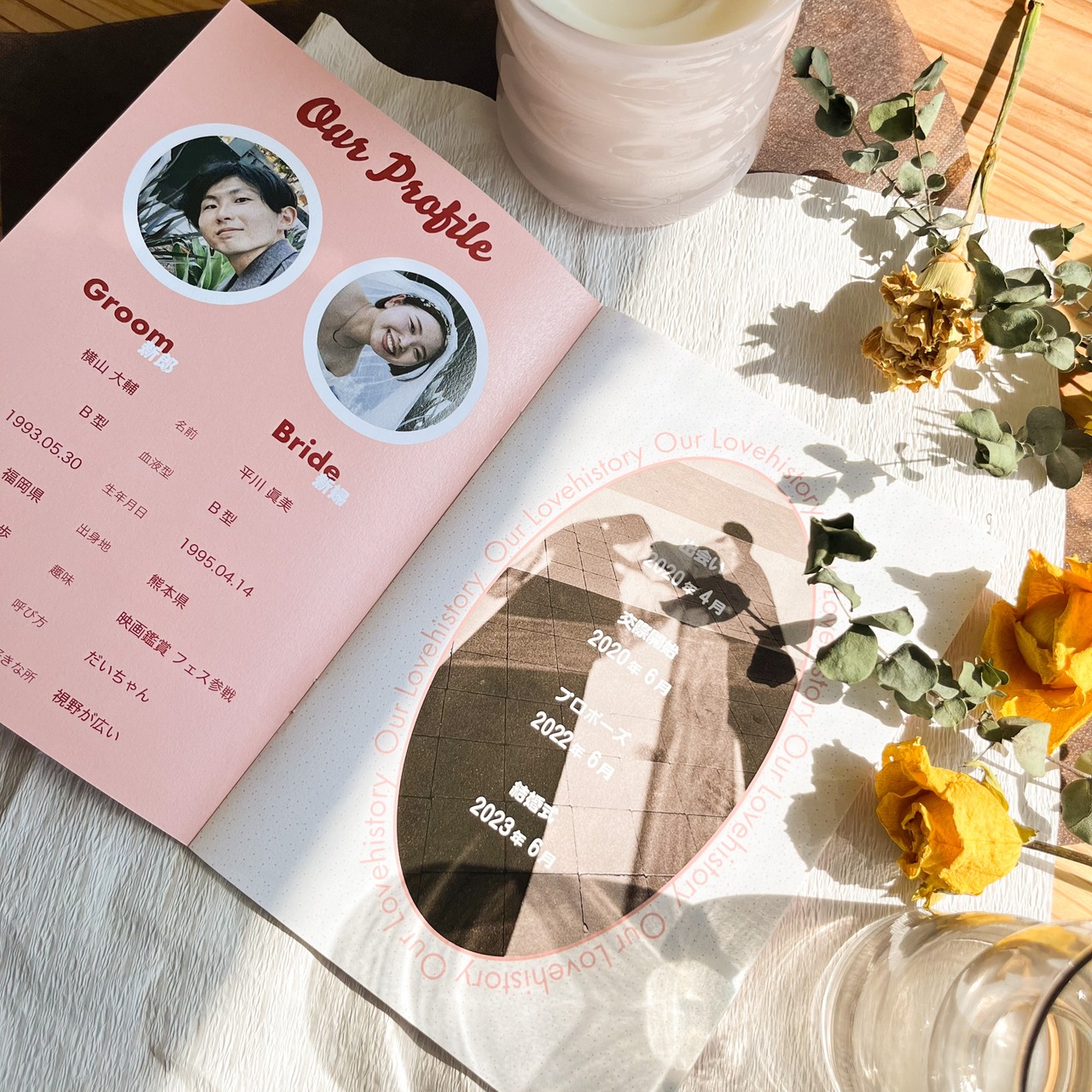 各ページデザインを自分でセレクトしてお好みのプロフィールブックを作れます◎