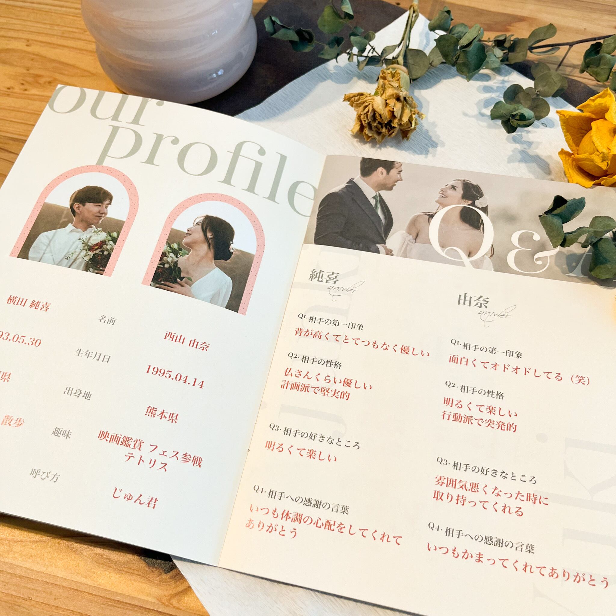 各ページデザインを自分でセレクトしてお好みのプロフィールブックを作れます◎
